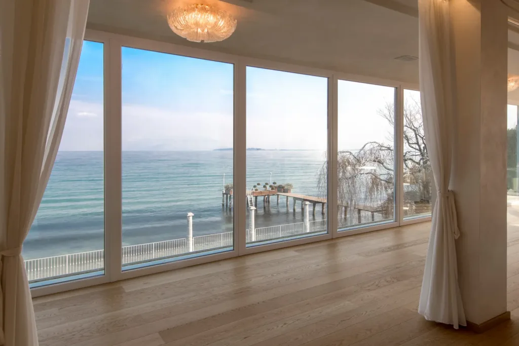 Ampie vetrate scorrevoli che portano luce e continuità tra interno ed esterno. Comfort, accessibilità e design contemporaneo in un’unica soluzione.